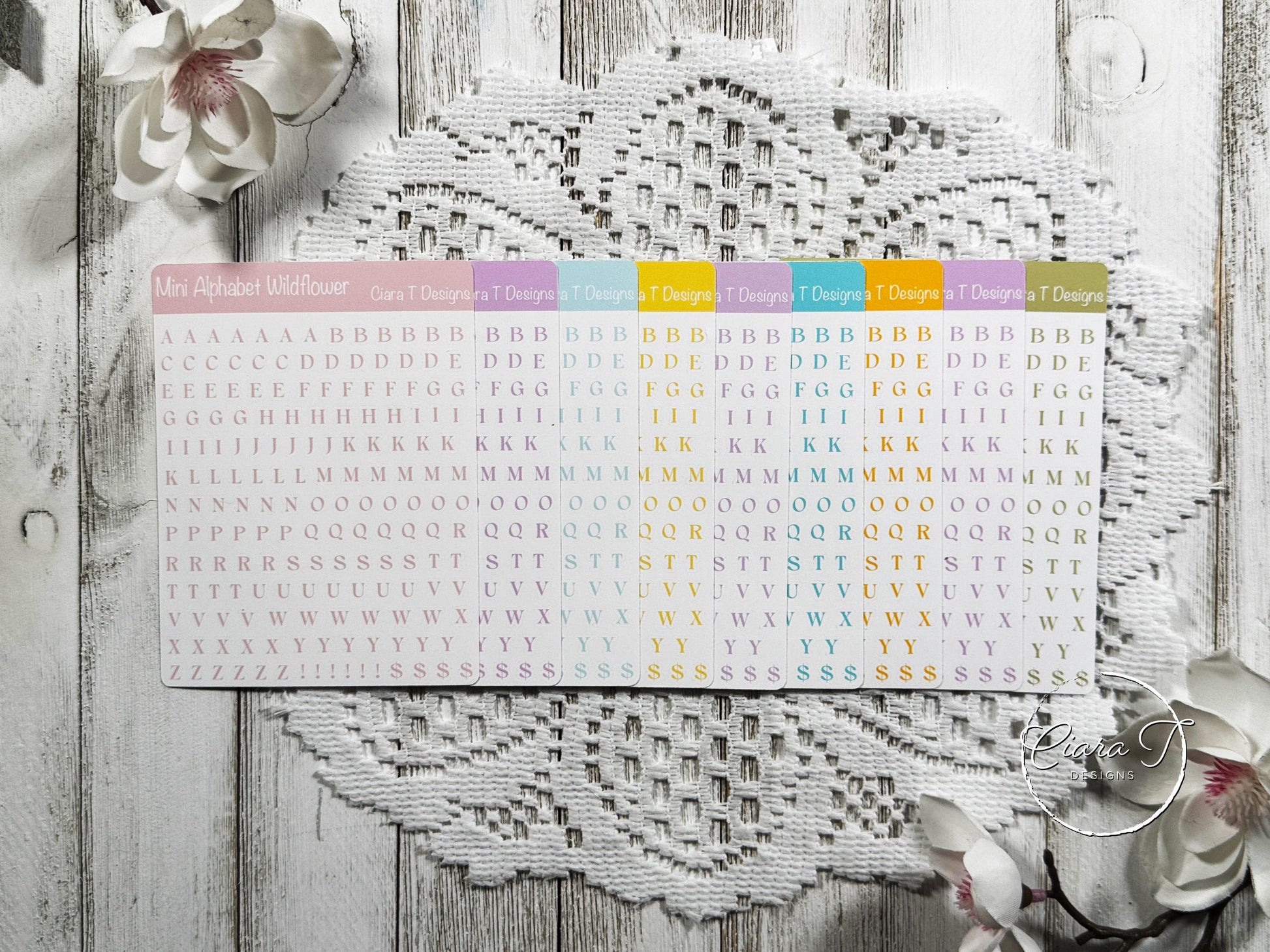 Mini Candy Coloured Serif Alphabet Sticker Sheet
