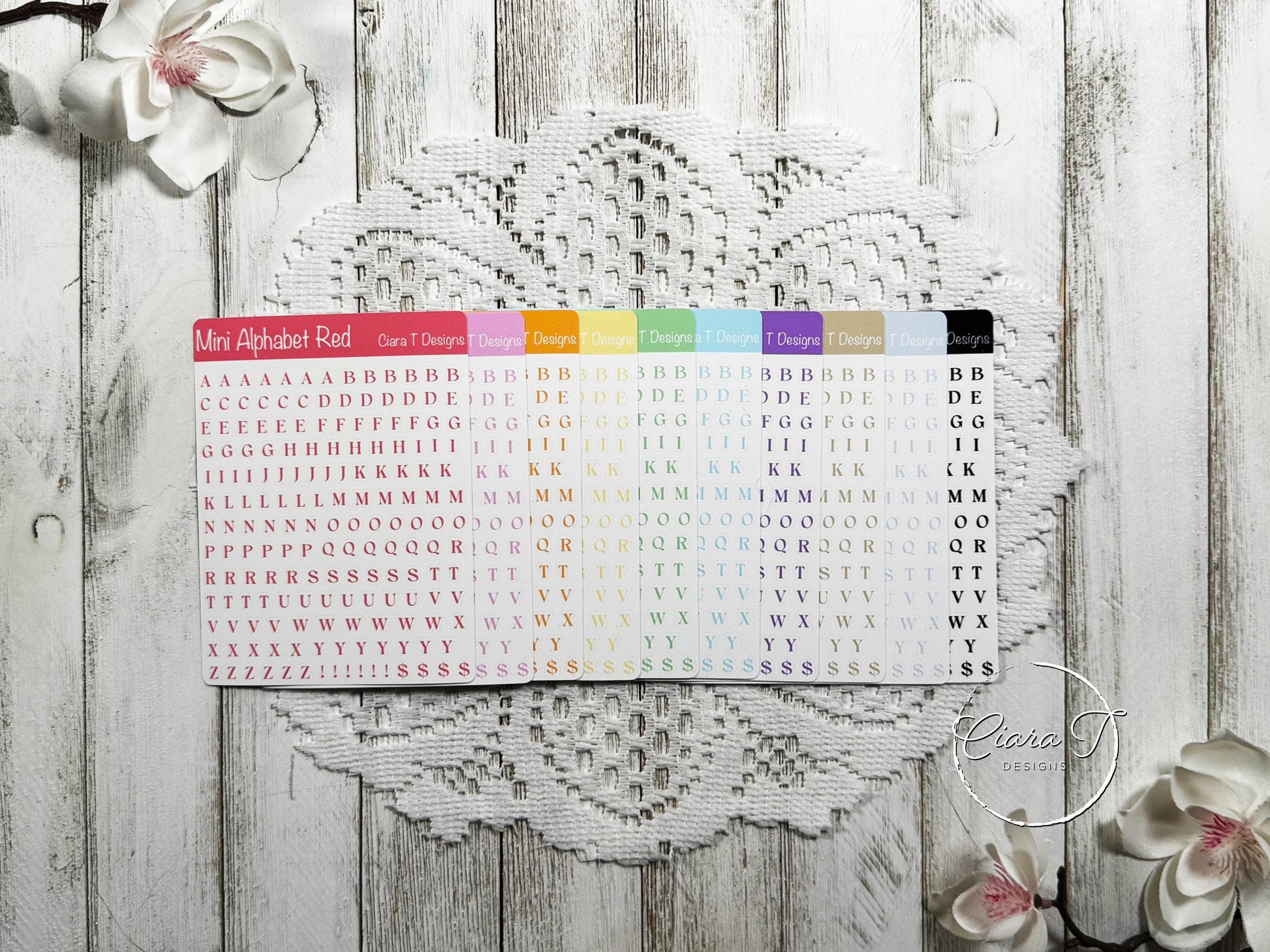Mini Rainbow Coloured Small Serif Alphabet Sticker Sheet